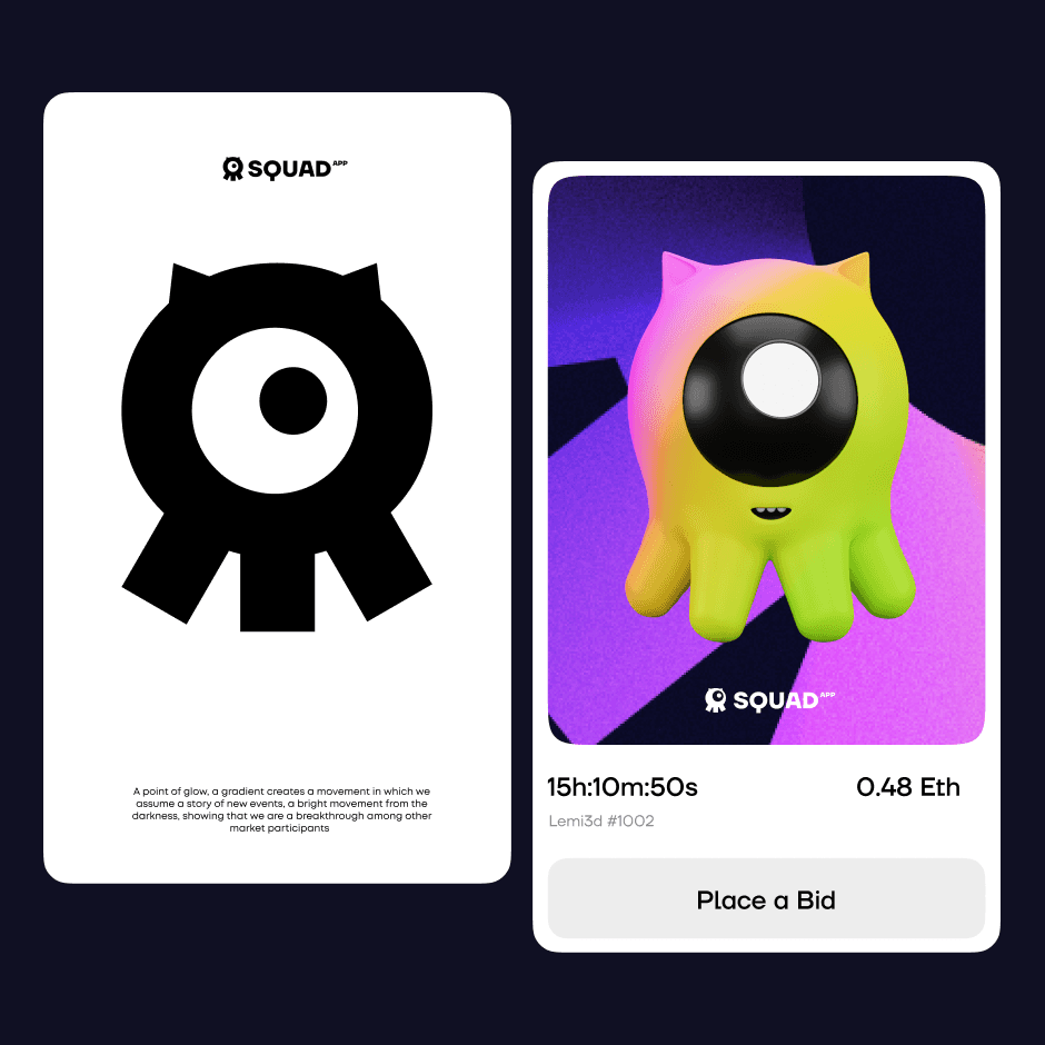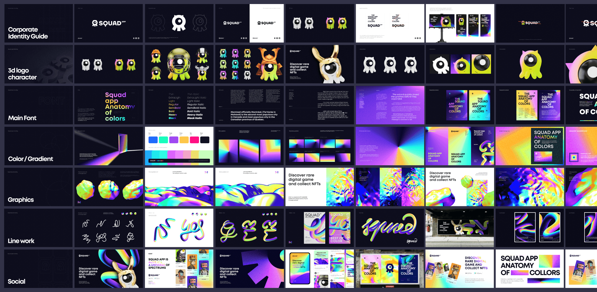 Squad Gaming — a visual universe I helped bring to life Working on Squad Gaming was one of those rare projects that leave a lasting mark. As the lead designer, I was involved from the earliest concepts to the final visual execution of this Play-to-Earn platform. We created a unique visual identity, where every element was crafted not just for aesthetics, but to carry meaning. The design language combined a vibrant and thoughtful color palette, carefully considered typography, and a deep understanding of gaming culture and the Web3 environment. Every visual component told part of the story we wanted users to experience. I developed a comprehensive brand guideline, detailing everything from logo usage and composition patterns to the overall visual rhythm of the identity. At the heart of the brand stood a mascot character — a distinctive, charismatic figure that not only added personality but also served as a vector-based logo, bridging emotion and symbolism. As part of the project, we produced engaging video content and designed a mobile application, where the visual system came to life in motion and interaction. This was a truly creative journey — one that demanded precision, emotional intuition, and the ability to merge storytelling with visual clarity. I am proud to have been a part of Squad Gaming. It was more than just a project — it was a design adventure.
